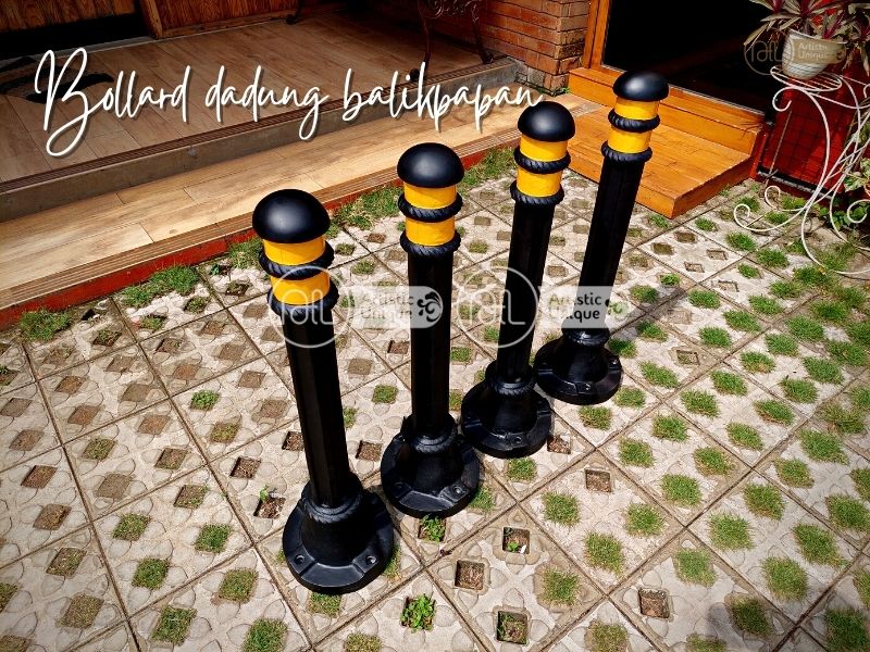 Bollard dadung ini merupakan desain yang simple serta mungil, dengan warna yang simple juga, untuk pengecatan nya menggunakan 3 lapis cat yaitu, pertama adalah lapisan mani atau cat dasar, kedua cat warna utama atau hitam dan kuning, ketiga lapisan cat clear agar warna tetap terjaga kecerahannya. Untuk instalasi pemasangan nya mengguanakan best plate dan di bor 4 titik dengan dynabolt.