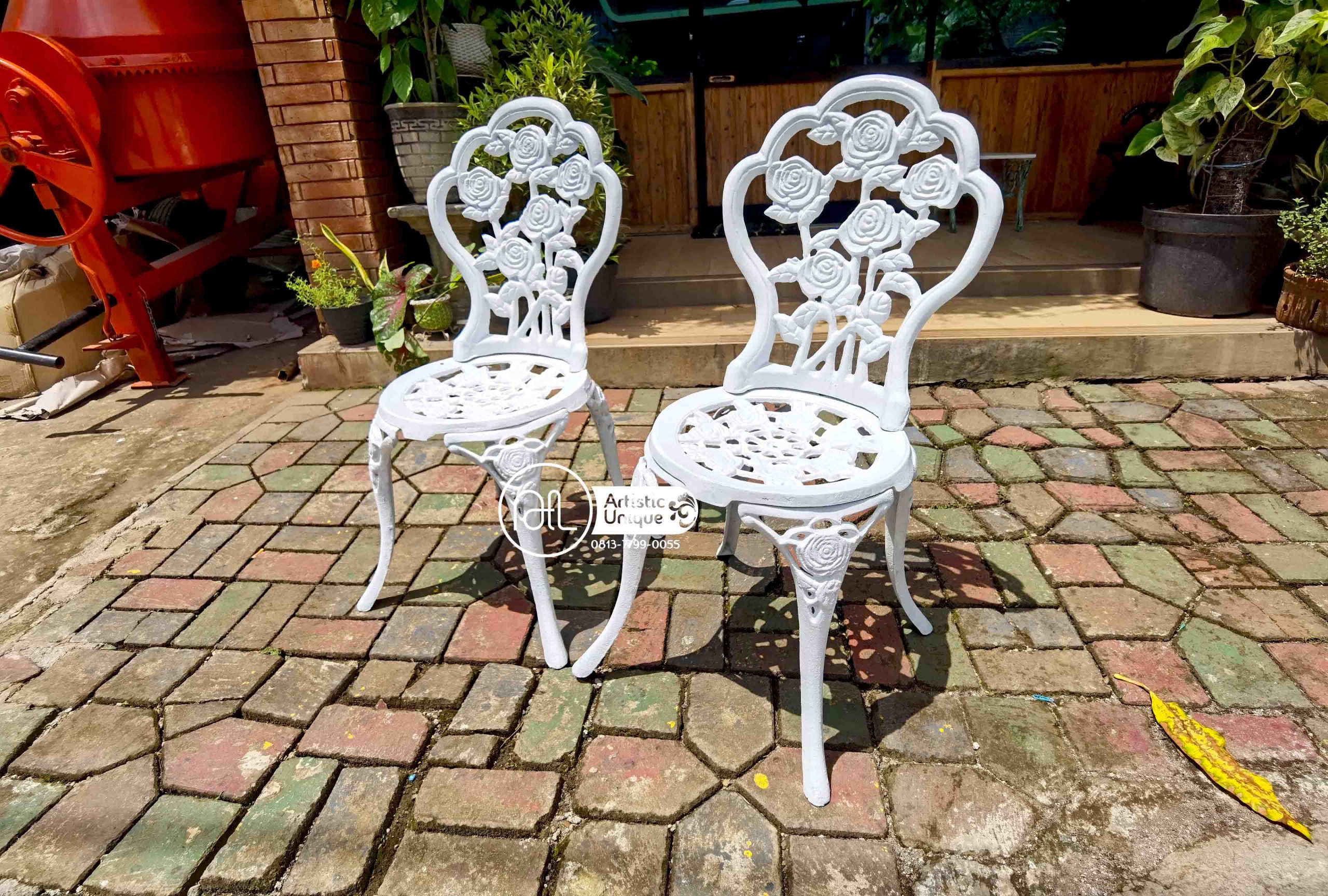 Produk kursi taman aluminium cor motif mawar ini adalah karya Tim Ayem Tentrem Logam. Kami tawarkan harga murah berkualitas, menyesuaikan dengan kualitas aluminium cor dan desain furniture tersebut.