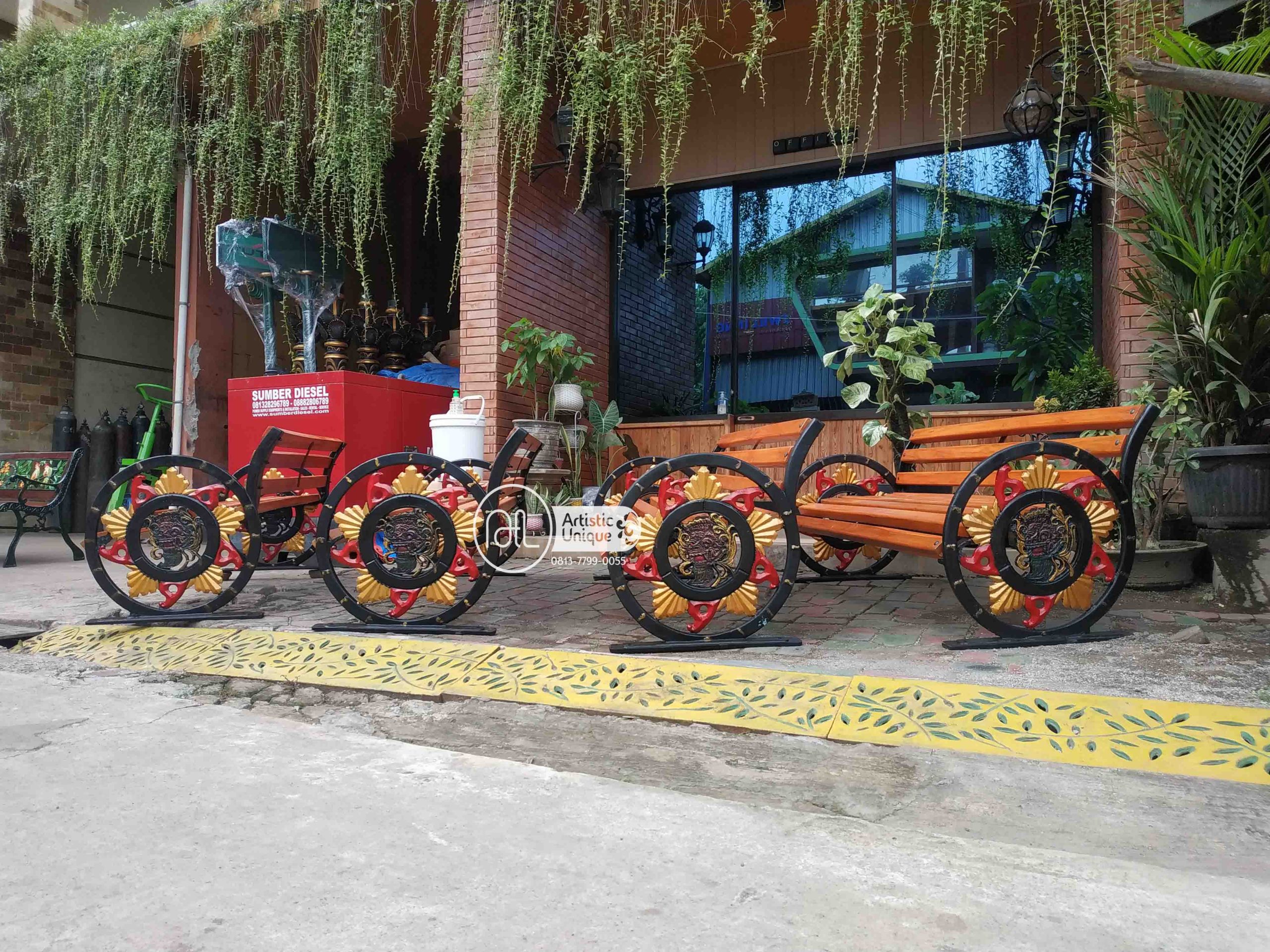 Mendesain Kursi Taman Minimalis dengan model unik tidak harus menghabiskan banyak dana. Dengan penataan yang cocok sebuah taman cantik dan rapi di halaman rumah dapat mempunyai nilai keindahan. Contohnya model kursi unik dengan penyangga desain motif kepala barong. Supaya taman minimalis unik terlihat seimbang maka kursi desain kepala barong ini dapat menjadi pilihan. Taman juga dapat diperindah dengan susunan ubin berpola khusus. Dilengkapi juga dengan bebatuan di bagian tepi untuk pembatas yang semakin mempercantik model taman.