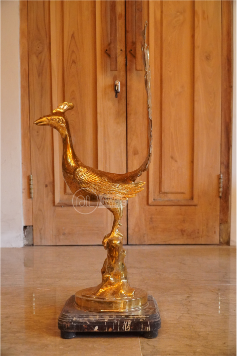 Ornamen kuningan dalam bentuk merak adalah karya seni elegan yang menghadirkan kemewahan dan keanggunan ke dalam ruangan. Dengan bulu-bulu indah yang terpahat dengan detail halus, ornamen ini memancarkan pesona kecantikan dan keanggunan. Kilauan kuningan menambah sentuhan kemewahan pada desain, sementara postur merak yang megah menciptakan atmosfer kemistikan dan keindahan alam. Sebagai perpaduan sempurna antara keelokan alam dan seni tata ruang, ornamen ini menjadi sorotan yang memikat dalam setiap dekorasi interior.